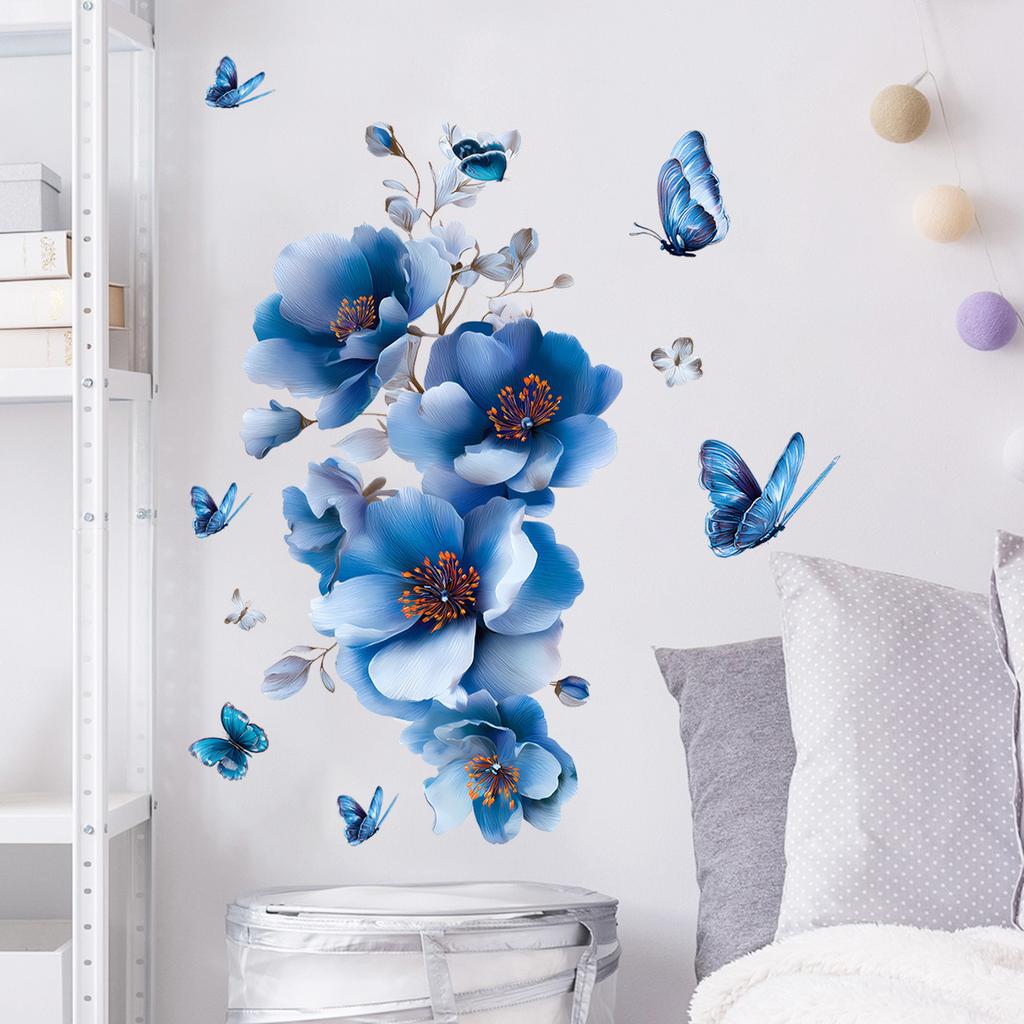 Elegant Blue Butterfly Flower Wall Sticker for Bathroom Living Room Bedroom Home Decor