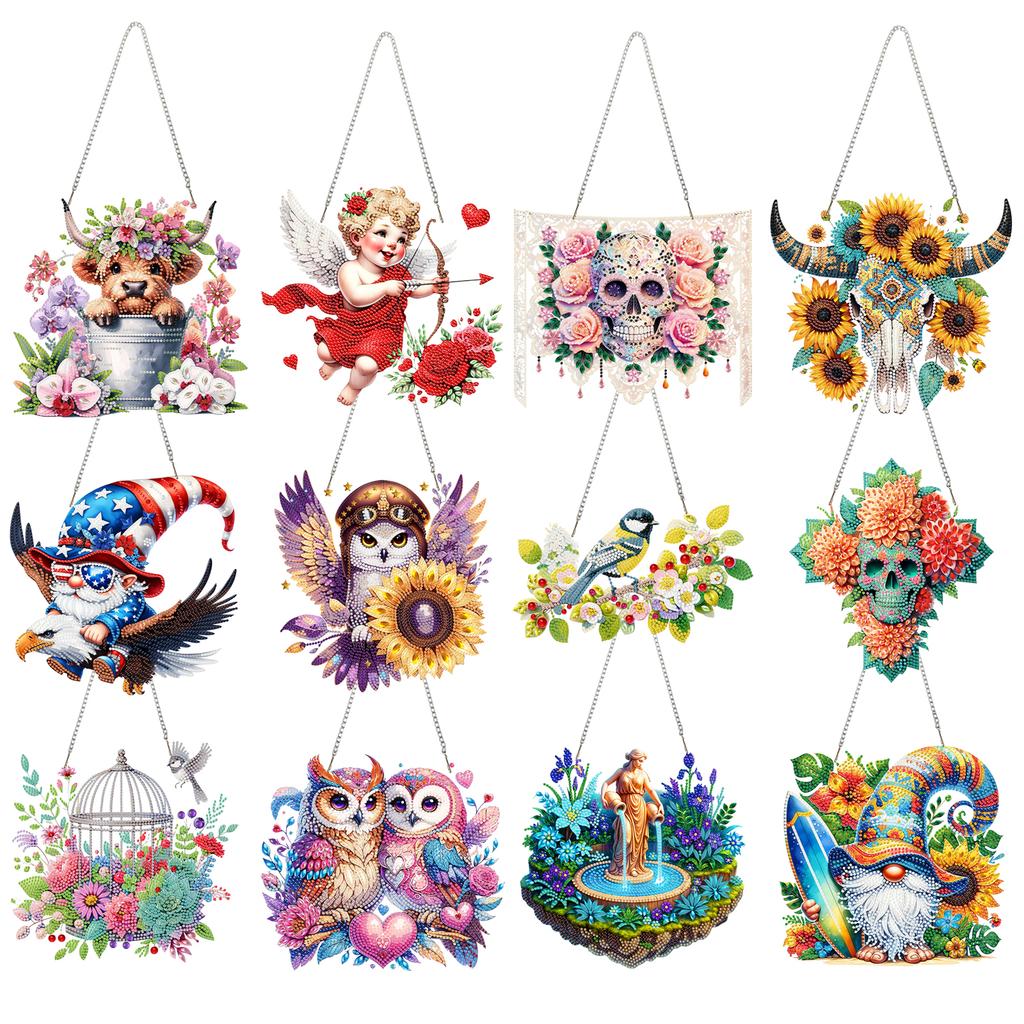 Animal Theme 2D Flat DIY Acrylic Rhinestone Diamond Art Window Pendants Diamond Painting Dots Pendant Wall Door Decoration