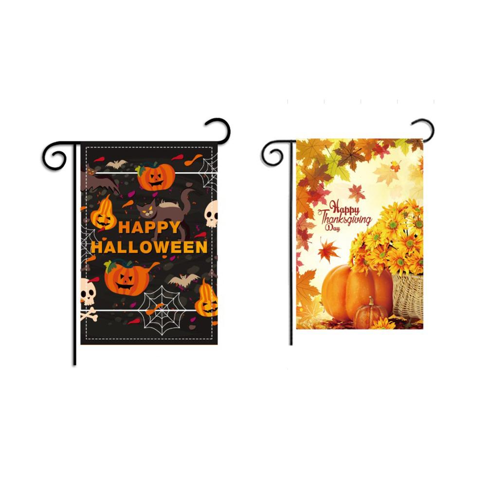 Double Sided Garden Flags Set 2 for Halloween and Thanksgiving Outdoor Yard Decor Polyester 18 Inch by 12 Inch