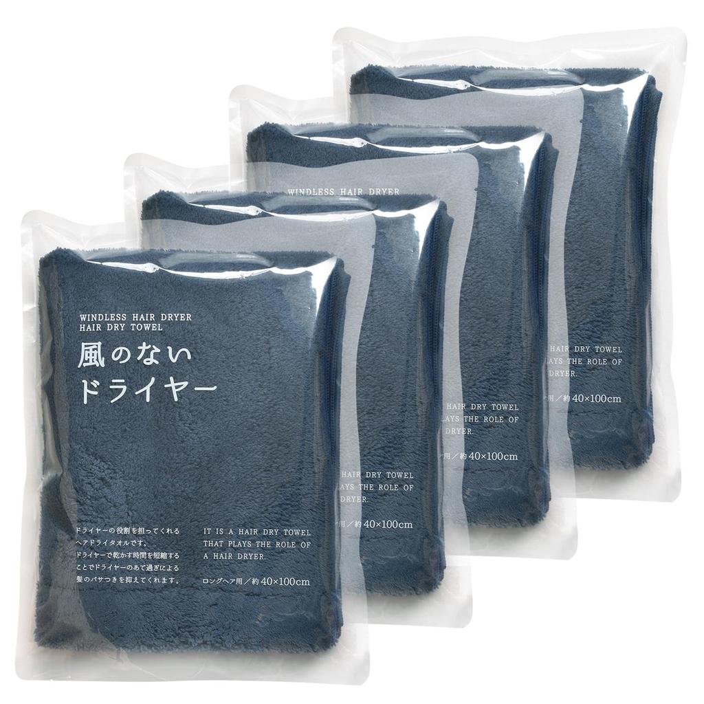 Tramparan Hair Drying Towels, Windless Dryer Towels for Long Hair (40 X 100 Cm), Set of 4 (Navy), Quick-Drying and Absorbent