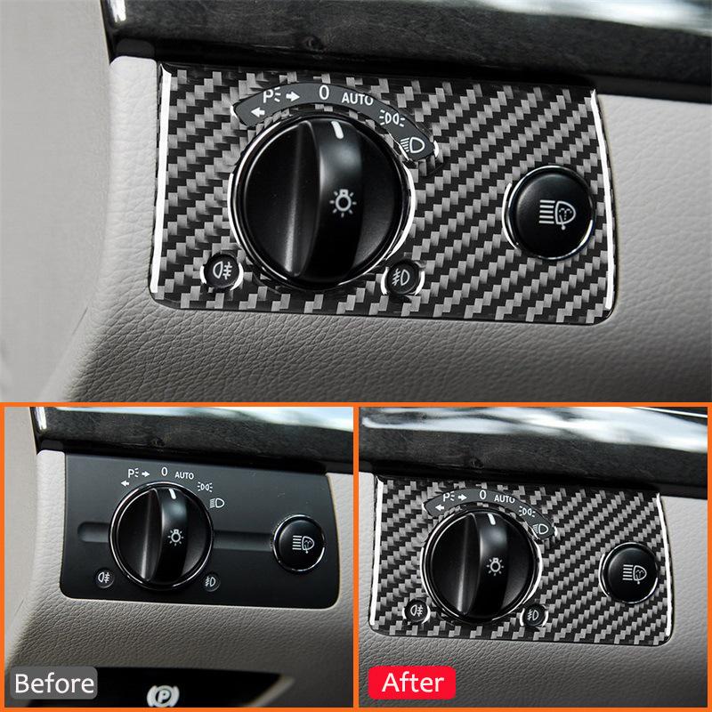 Carbon Fiber Auto Headlight Adjust Control Button Knob Panel Frame Decoration Sticker For Mercedes Benz E Class W211 2003-2009