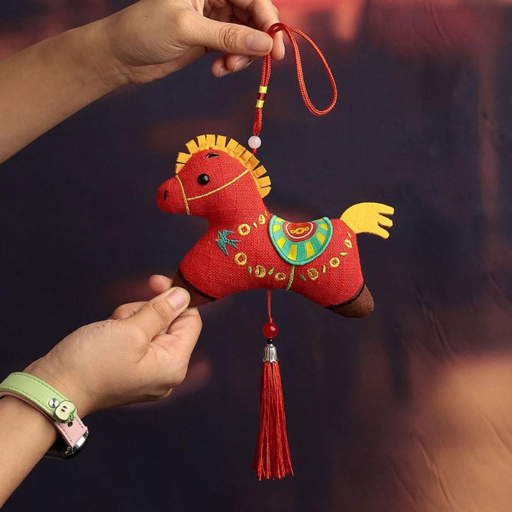 Red Chinese Zodiac Horse Doll Cartoon Mascot Traditional Pony Plush Doll New Year
