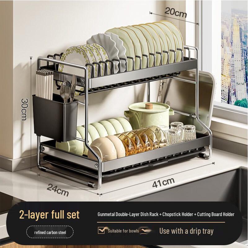 Double Layer Stainless Steel Kitchen Dish Drying Rack