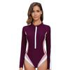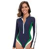 Color Block One Piece Swimsuit for Women Long Sleeve Zipper Front High Neck Nylon Swimwear
