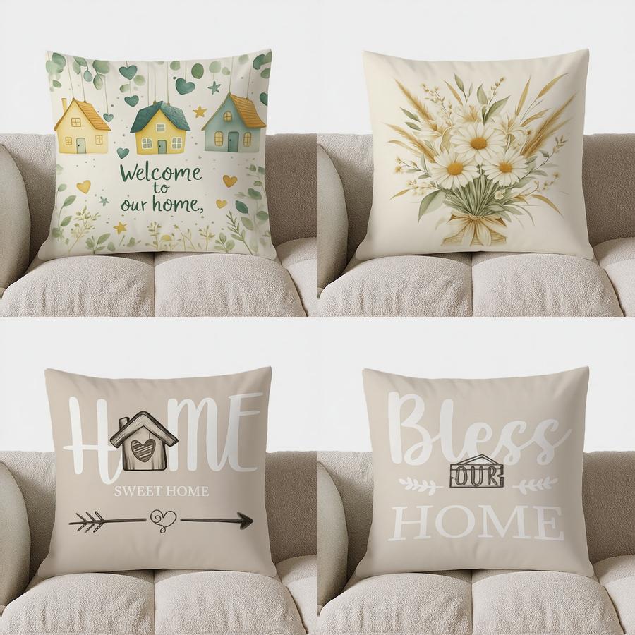 Home Decor Welcome To Our Home: House & Heart Decor Pattern Cushion Cover Suitable For Sofa Bedroom Car Pillow Cover