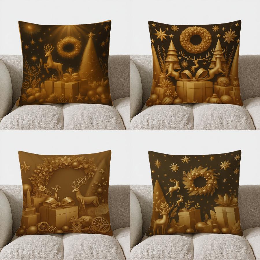 Home Decor Golden Christmas: Deer, Tree & Gift Cushion Pattern Cushion Cover Suitable For Sofa Bedroom Car Pillow Cover
