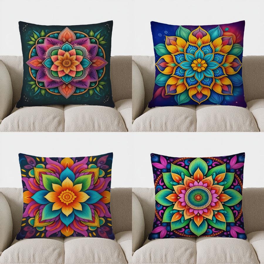 Home Decor Colorful Mandala Pattern Decorative Throw Pillow Pattern Cushion Cover Suitable For Sofa Bedroom Car Pillow Cover