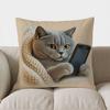 Home Decor Cute Cats In Pjs Holding Phone Pillow Cover Pattern Cushion Cover Suitable For Sofa Bedroom Car Pillow Cover