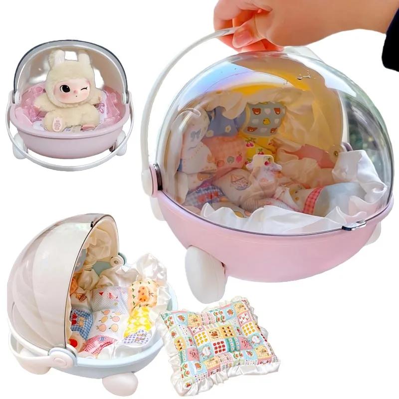 1/2pc Doll Bed Baby Stroller Storage Box with Mat for Labubu Spa Module Doll Sleep Cradle Cart Dolls Bed Furniture Acssories