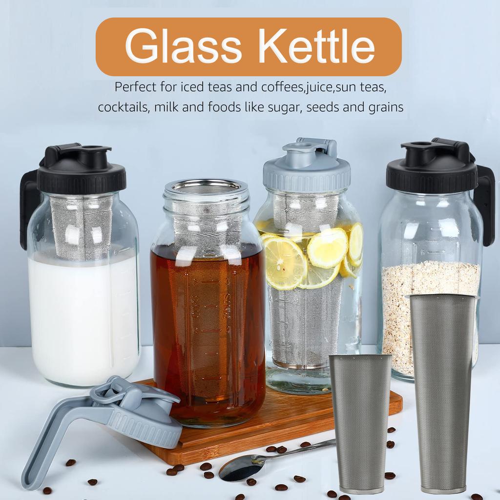 09/1.8L Cold Brew Coffee Maker With Stainless Steel Filter, Glass Coffee Pot,Leak Proof Lid, Make Iced Tea Juice Milk for Fridge