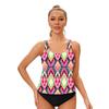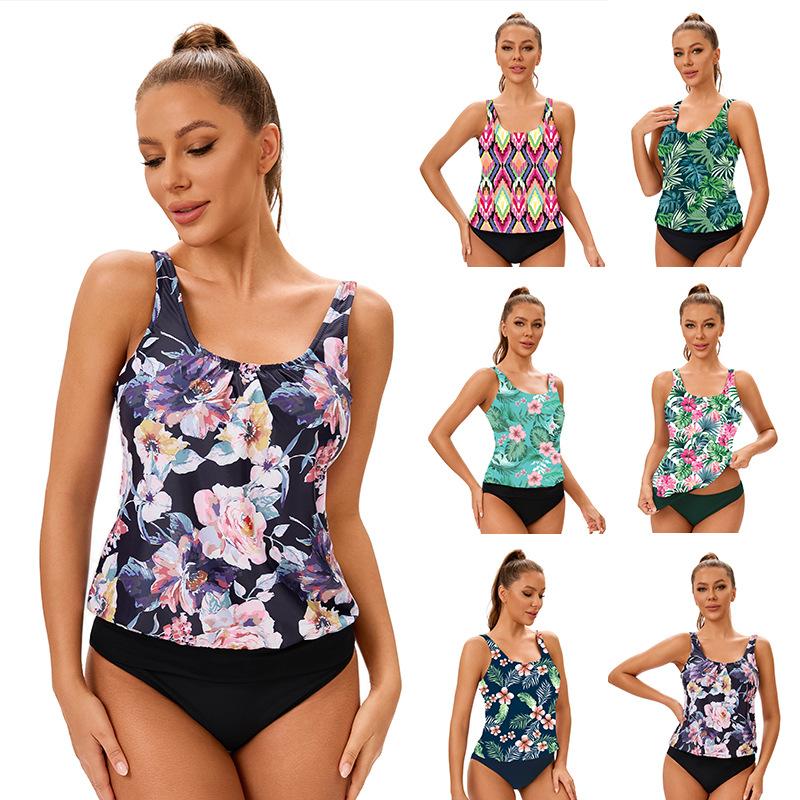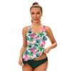 Women Two Piece Swimwear Set Nylon Floral Print Tankini Top Bikini Bottom