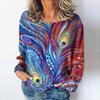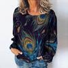Summer O Neck Women T-Shirts Peacock Feather Graphic Fashion Long Sleeve Harajuku Y2k Top Oversized Casual Female Cotton T Shirt