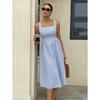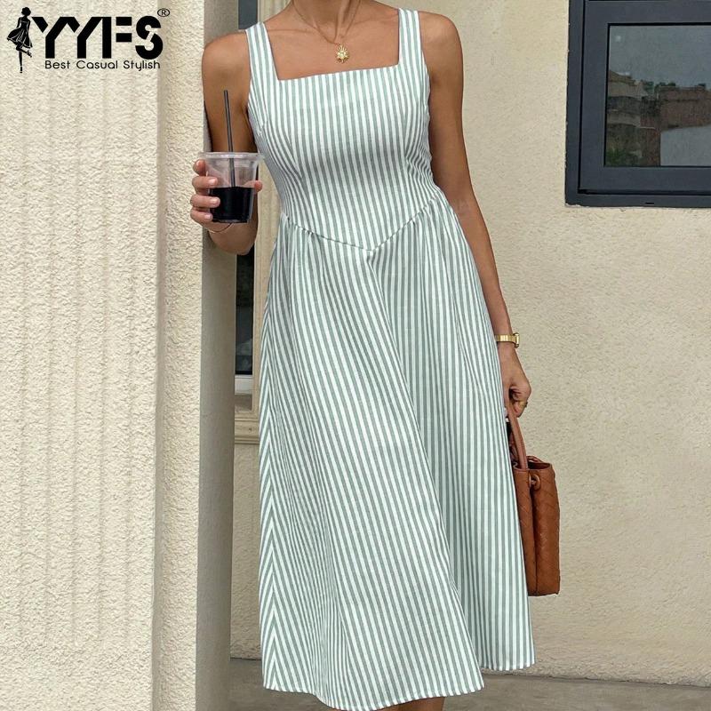 YYFS Women's Fashion Summer Spring Stripe Print Sleeveless Square Collar High Waist Casual Dresses