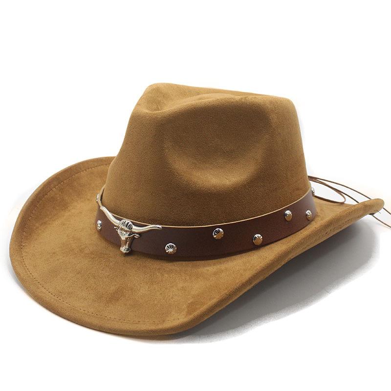 Western Cowboy Turned Edge Cowboy Hat Bull Head Accessories Suede Jazz Hat Riding Hat