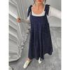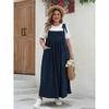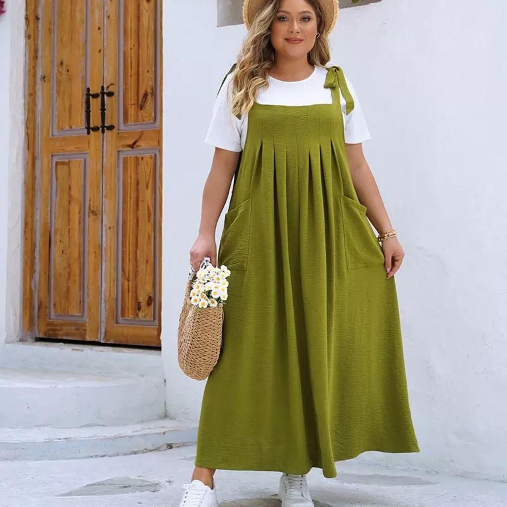 Plus Size Solid Tie Shoulder Overalls Dress For Women Summer Casual Loose Sleeveless Maxi Long Dresses with Pockets