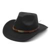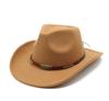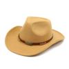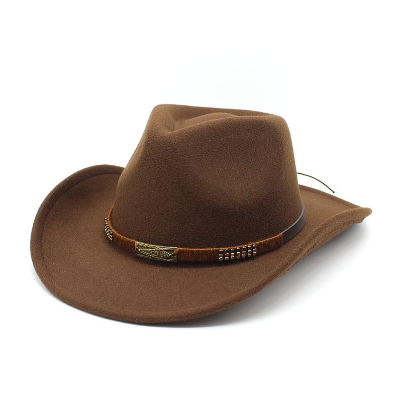 Warm Casual Versatile Coffee Belt Men'S And Women'S Woolen Western Cowboy Hat Big Edge Shading Hat