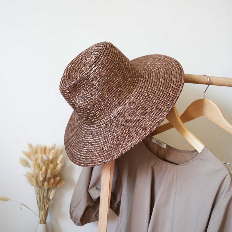 French Vintage Brown Big Eaves Holiday Straw Hat Summer Female Shade Sun Protection Beach Straw Straw Jazz Hat