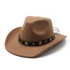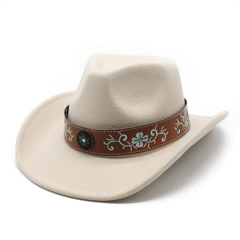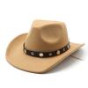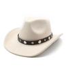 Western Cowboy Hat Off-White Men'S Ladies Outdoor Travel Hat Riding Hat Wool Top Hat Sunscreen Cowoy Hat