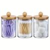 Qtip Holder Dispenser with Bamboo Lid 10 Oz Clear Plastic Apothecary Jar Containers for Vanity Makeup Organizer Storage Bathroom