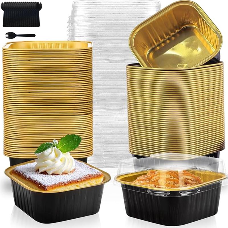50Pcs Mini Baking Cups Aluminium Foil Cake Pans with Lids Spoons Cupcake Cups Muffin Liners Wedding Christmas Gatherings Parties
