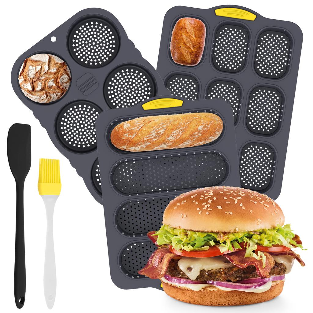 3/4/6/9 Cups Silicone Hamburger Bun Mold, Nonstick Hamburger Bun Pans, Heat Resistant Homemade Hamburger Bread Baking Mold