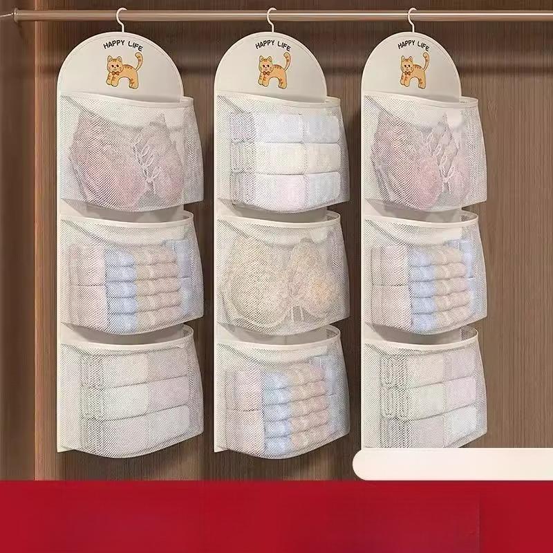 Large-capacity Sock Storage Gadget, Dormitory Wardrobe Hanging Underwear Multi-layer Pantyhose Hanging Bag, Hanging and Organizing Mesh Bag
