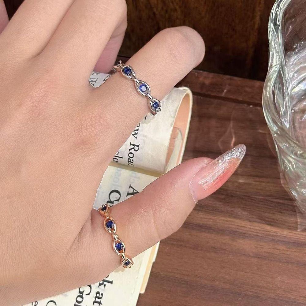Adjustable Open Ring Sapphire Blue Women's Jewelry Fashion Evil Eye Ring for Daily Wear and Prom