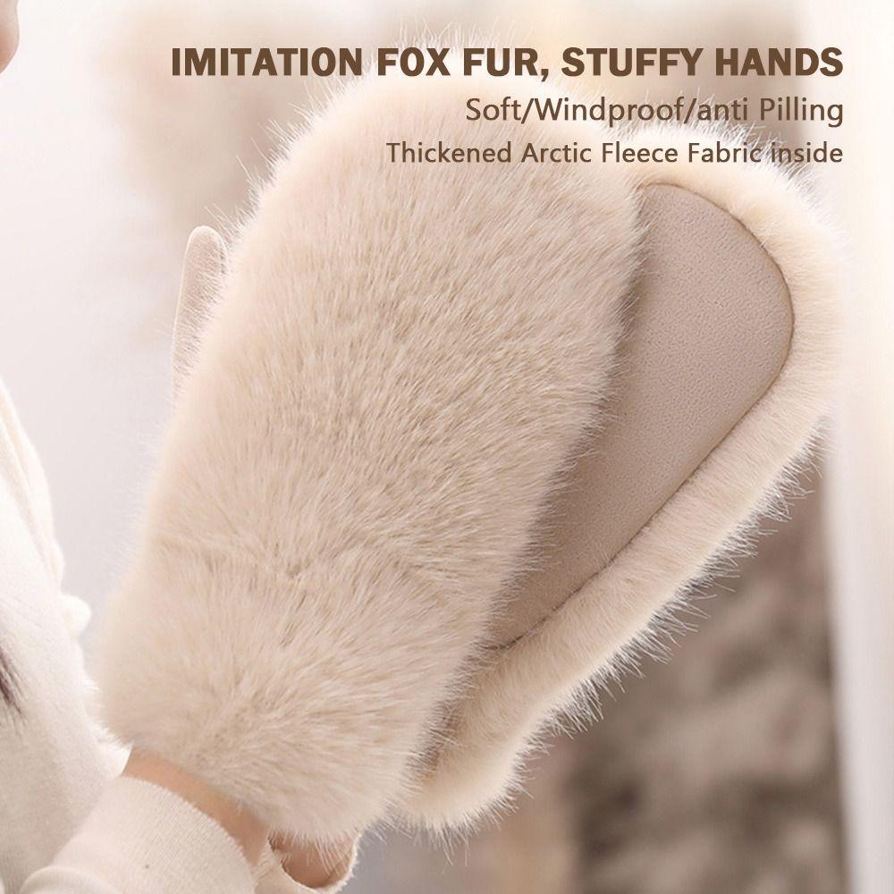 Keep Warm Plush Gloves Fleece Lining Faux Fur Mittens Cute Winter Gloves Winter Season