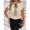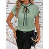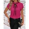 YYFS Women's Fashion Casual Summer Spring Flower Pattern Print Short Sleeve Stand-Neck Blouses & Shirts