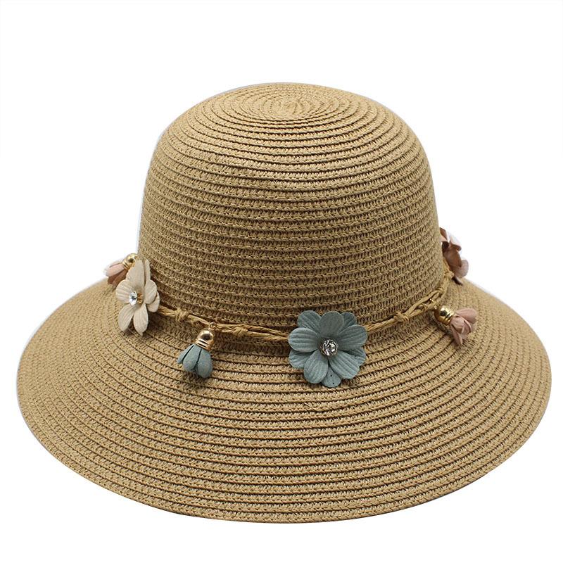 Flower Straw Hat Women'S Summer Small Fresh Beach Hat Parent-Child Hat Foldable Sun Hat Outdoor Bucket Hat