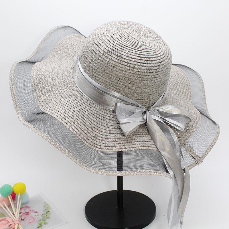 Hat Women'S Summer Sunscreen Sunshade Big Brim Mesh Straw Hat Travel Sun Hat Seaside Versatile Vacation Beach Hat