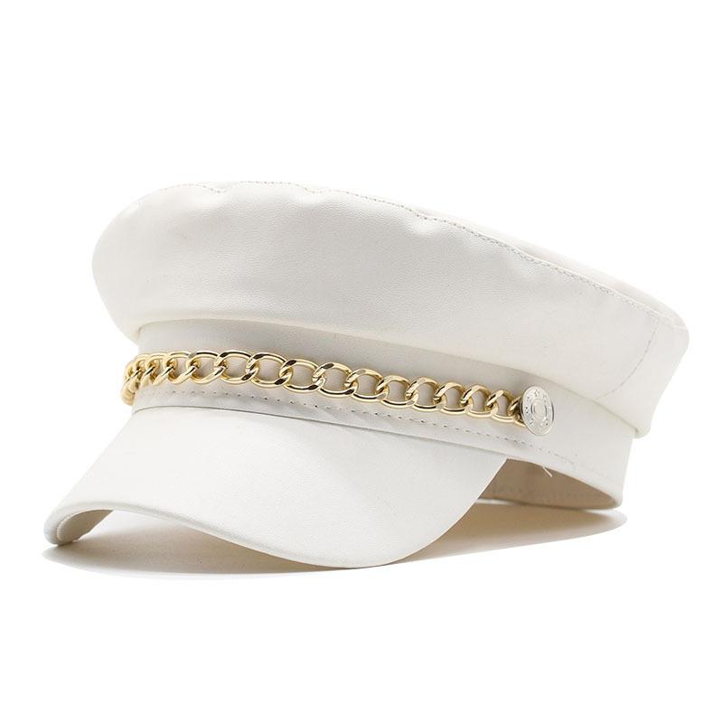 Women'S Pure Pu Leather Metal Chain Button Navy Hat Seasonal Windproof Warm Women'S Cap
