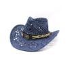 Big Cow Head Belt Retro Comfortable Breathable Casual Versatile Outdoor Big Eaves Sunscreen Sunshade Western Denim Straw Hat