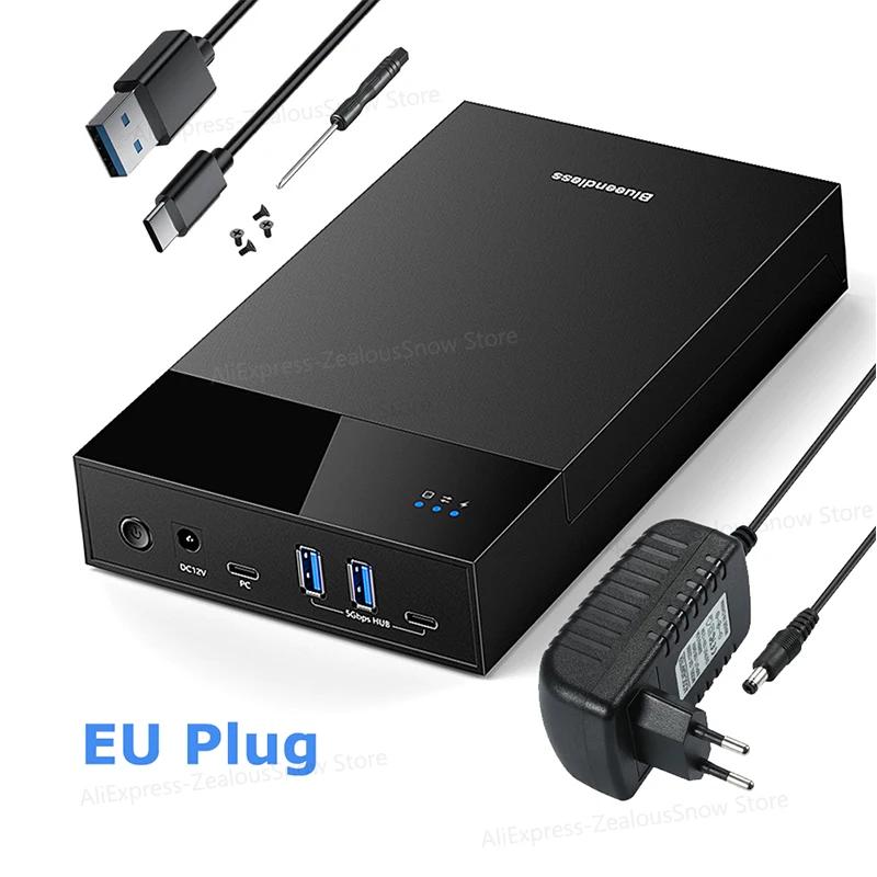2.5/3.5 Inch HDD/SSD Enclosure USB3.0 HUB Support 20TB USB Ports External Hard Drive Box for 3.5 2.5 Inch SATA SSD HDD Case