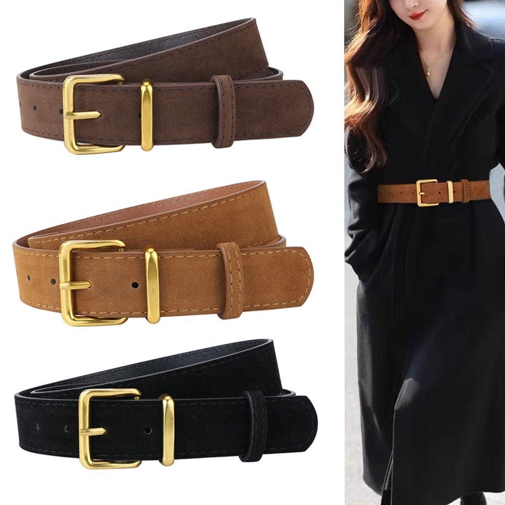 Versatile Women Waist Belt Luxury Design 3.3cm Waistband Retro Suede Leather Belt Jeans Decoration