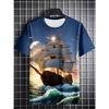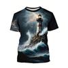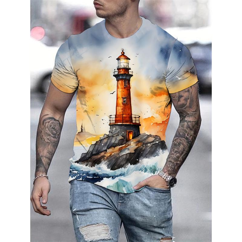 Seaside Lighthouse Sailboat 3D Print T-Shirts Streetwear Men FashionOversized O-Neck Short Sleeved T Shirt Tees Tops Clothing