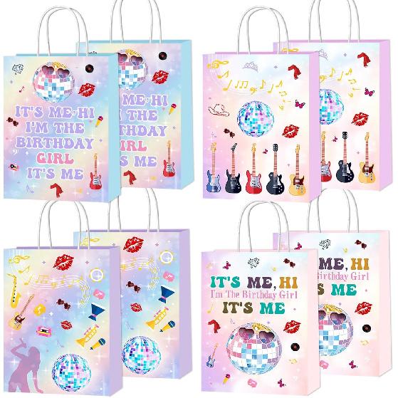 SNABETNA Music Birthday Party Paper Bags Decorations,16pcs Goodies Bags,Double Sided Birthday Paper Bags With 4 Styles, Music Theme Birthday Party