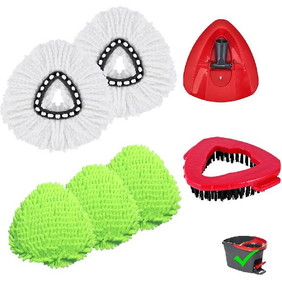 7 Pack Reusable Microfiber Mop Pads Compatible with O-Cedar EasyWring Triangle Mop,3 Elastic Mop Head 2 White Mop Replacement,One Scrub Brush & One
