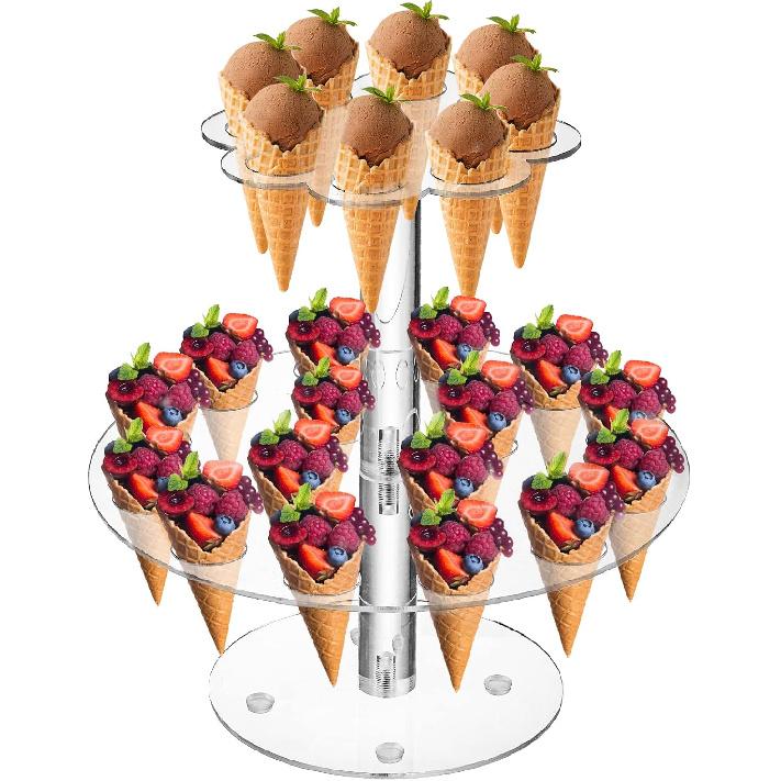 The food diplay stand rack is ideal for multi-occasion, like baby shower, bridal shower, wedding party, birthday party, christening, anniversary prom, bake sales, family events, etc. This cone holder stand giving you a different experience.