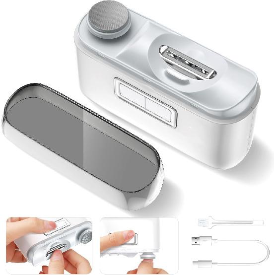 【2 in1 Electric Automatic Nail Clipper & Easy to Use】This nail trimmer is ONE BUTTON OPERATION. Only need to press the button, the electric nail clipper will finish cut nails, trim nails, grind / file / polish nails, and vaccum the nail debris at the same time. Compared with tradtional nail clippers, this electric nail clipper or nail file or nail trimmer, whatever you call it, makes trimming nails so easy, neat, smooth.