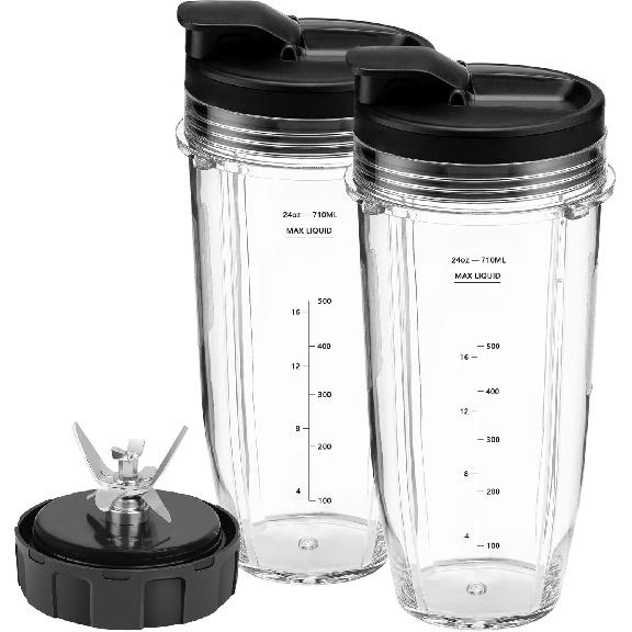 Complete Kit: Includes 2x 24oz replacement cups with spout lids and 1x 7-fins extractor blade. It's a must kit you need for a seamless blending experience with your Nutri Ninja blender