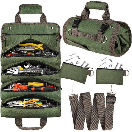 Tool Bag Organizers, Portable Tool Storage with 2 Detachable Tool Pouch, Heavy Duty Tool Organizer for Men Small Tool Bag with Strap for Electrician,
