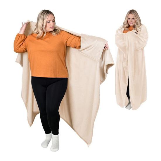 Innovative Wearable Design: Featuring arm slots on both sides, this blanket can be worn like a shawl or cape, allowing you to move freely while staying warm. This unique functionality enhances convenience and warmth, ideal for multitasking at home or on the go.