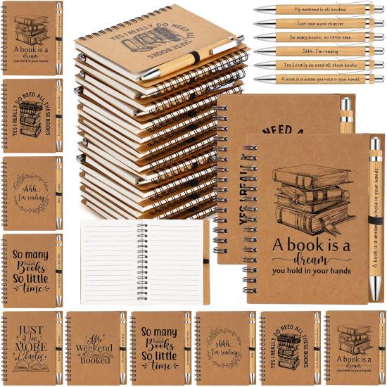 Reliable Material: our book lover gift set includes exquisite inspirational spiral notebooks and pens