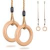 YAERSI Wooden Gymnastics Rings,Pull Up Rings with Adjustable Buckle, Wooden Swing Rings for Kid's Home Exercise