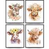 ETVISO Highland Cow Wall Art, Nursery Decor Wall Art Prints Set of 4, Western Floral Baby Cow Watercolor Wall Decor, Highland Cow Baby Shower