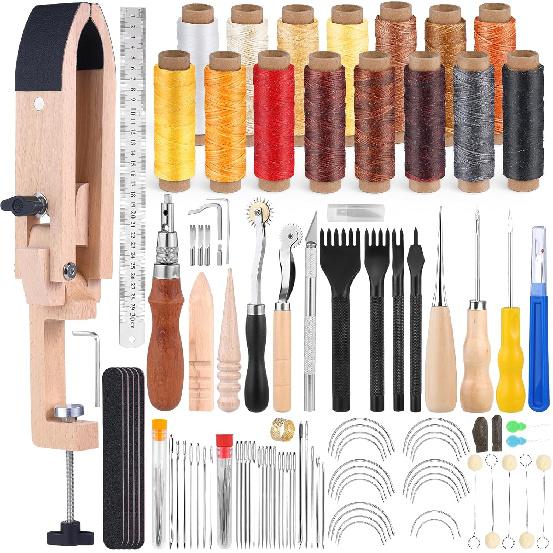 More Leather Working Tools: This leather working kit comes with hand sewing needles, curved needles, leather sewing thread, scissors, thimble, wool daubers, leather prong punch tool, carving tools, etc. This leather sewing tools kit is great for you to repair leather.