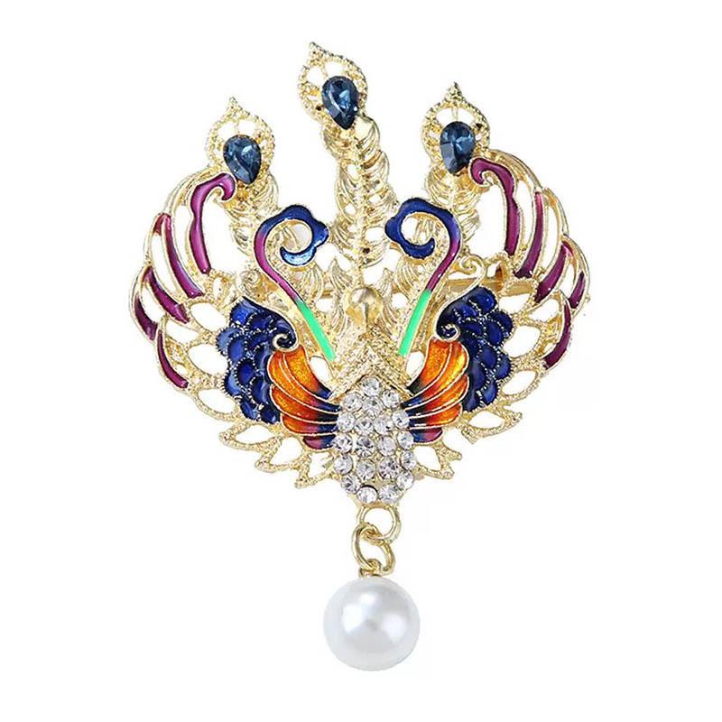Luxurious Colorful Phoenix Brooch for Women Peacock Brooch Retro Pearl Brooch