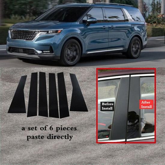 For Kia Carnival 2022-2024 Black Pillar Posts Moulding Door Trim Glossy Cover 6P