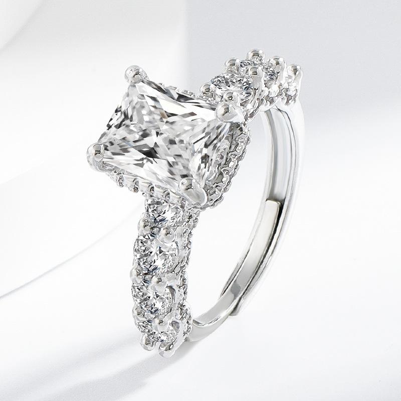 2026 Fashion Square Diamond S925 Sterling Silver Ring Light Luxury High Carbon Diamond Ring Temperament Women's Jewelry Ring